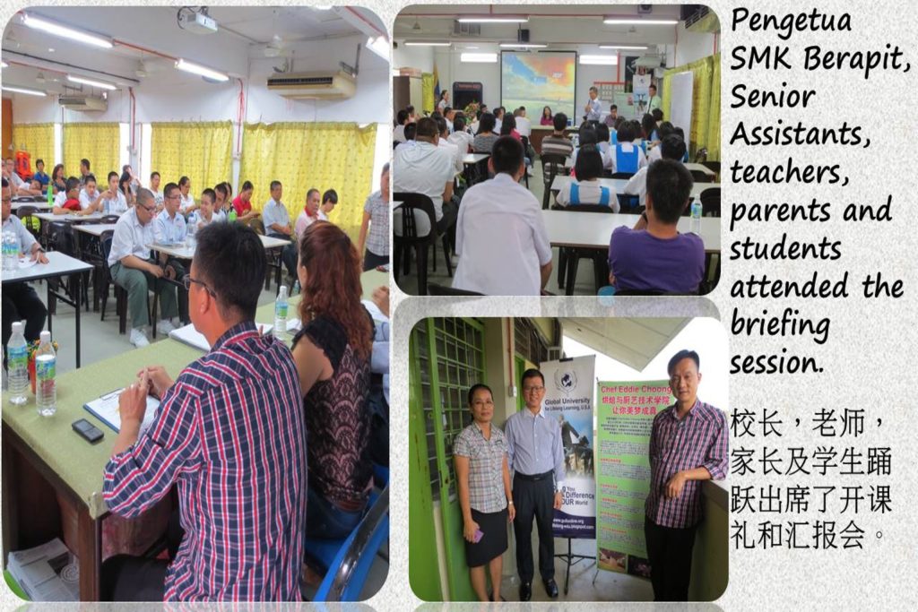 January 23, 2015 Events Launching of Bakery & Patisserie Classes Launching of Bakery & Patisserie classes in SMK Bukit Berapit, Bkt Mertajam for Form 4 & 5 students. 在大山脚中学的西式糕点课程开课了,中四同学反应踊跃,在家长的陪同下报名,两班学额一小时内爆满。感谢校长、家教协会及负责老师的大力支持和推动。由于反应良好,校方要求明年另外增加两班。